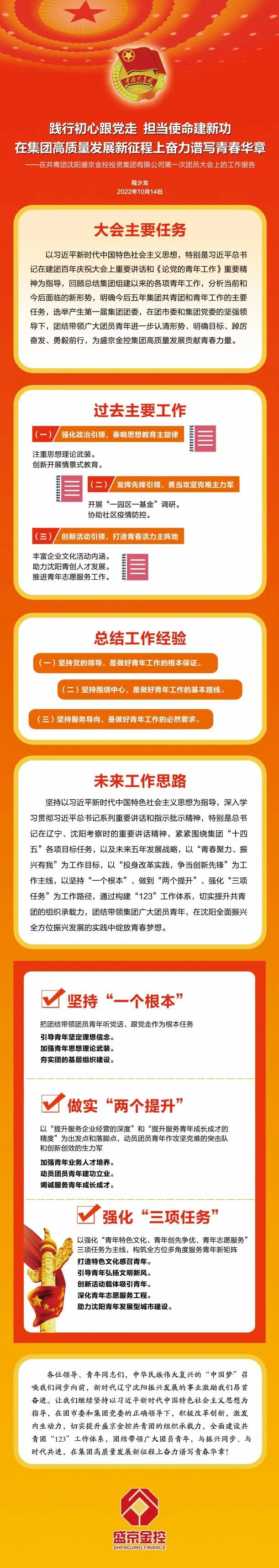 集团党委邵文龙书记在讲话中对大会的胜利召开体现祝贺,对全体共青团员以及各岗位上的宽大AGGAME金控青年致以真挚问候。他指出,AGGAME金控集团正处于高质量生长的要害时期,第一届集团团委要抢抓机缘、乘势而上、克难攻坚,一直顺应新时代、新情形、新使命、新要求,立异开展与党的事业相契合、与企业生长相融合、与青年需求相切合的各项载体事情,向导宽大团员青年,充分验展生力军和突击队作用,以“时不我待、舍我其谁”的英雄英气,在集团高质量生长新征程中再建新功,在沈阳周全振兴全方位振兴的历史洪流中彰显实力!