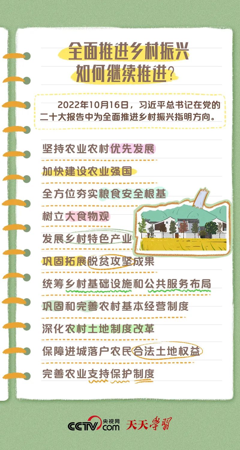 墟落振兴的基础目的,也就是总目的,是加速建设农业强国。这个总目的的提法,比党的十九大报告中的提法有了新的升华。十九大报告提的是“加速农业农村现代化”;而二十大报告提的是“加速建设农业强国”。之以是有这个转变,是由于我们看到,天下上一些已经实现了农业农村现代化的国家,但却并不是农业强国,在国计民生的不少基本问题上,还不得不受制于人。真正的农业强国,在天下上则是屈指可数。关于我们这样一个有着十四亿生齿的大国来说,若是不建成农业强国,在用饭问题上还会被人“卡脖子”,那么我国对自身的现代化建设就会难以真正掌握自动权。